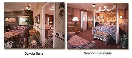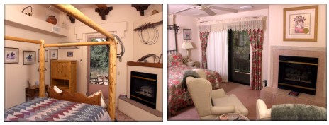 The Southwest-style inn is located in a quiet, juniper-studded area. Each of the sixteen guest rooms features a cozy fireplace and luxurious bath with Jacuzzi tub, TV/VCR, robes and refrigerator.