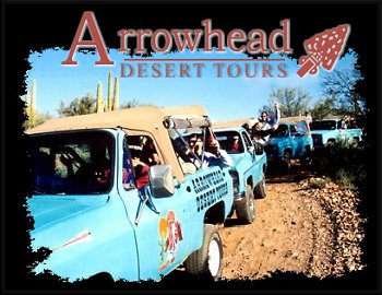 Arrowhead Desert Tours Arrowhead Desert Tours offers action packed open air four wheel drive adventures into "The Little Grand Canyon", prehistoric home of the Apache Indians. See their ancient petroglyphs (rock art). Explanations given on their culture, plants, animals, and geology of gold. Sample edible cactus, shoot a six gun, throw a tomahawk, shoot professional potato guns, pan out gold and garnet gemstones from our backcountry panamint gold claims, in this spectacular river canyon. We offer team building events, coupled with desert cookouts, entertainment, trail rides and river rafting combinations. Operated by De Stories Bros. since 1978.