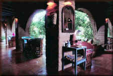 The all-adobe home features over fifty arches and includes entryways with vaulted brick ceilings and beautiful interior arches and courtyards with fountains. Casa Tierra has three beautifully decorated rooms and a two bedroom suite featuring private baths, queen-size beds, refrigerators, microwaves, and private entrances.