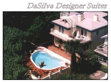 DaSilva Designer SuitesDaSilva Designer Suites is an elegant 1930's home renovated and modernized with marble fireplace, granite and marble countertops in baths and kitchen, oak flooring and modern appliances. Recessed lighting makes this Key West Style home relaxing and welcoming! Our three luxury apartments feature: fireplaces, hardwood floors, cable TV's with HBO, VCR's, surround sound, phones, fully equipped kitchens, dishwasher, disposal, microwave, heated pool, A/C, gas barbeques, washer, dryer, and Gulf-Side beach access. One bedroom units also include sunken tub or whirlpool. Ideal for family stays. One large house and two smaller apartments can sleep up to 8 people comfortably.