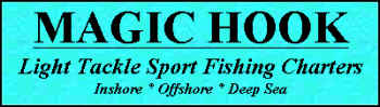 Magic HookCome aboard the Magic Hook for a day of fun and relaxation. We custom tailor your day on the water to maximize your enjoyment. Whether its a day chasing giant tarpon, or catching a boat load of reef fish, or a stop at the beach for the kids to play, its our goal to show you a great time. Our fishing area covers from Sanibel island south to Naples, including all the waters around Fort Myers Beach. Your captain, Rick Featherstone has nineteen years fishing and guiding local waters and offers a first class charter operation, top quality boat, gear, and a great desire to make your day on the water special. Your charter will include fishing license, bait, tackle, a cooler full of ice, & fish cleaning. Local tradition requires that you bring your lunch & beverage. Catch and release fishing is encouraged.