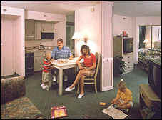 Orlando's best all suite hotel is perfect for families and features spacious one and two bedroom suites with separate sitting and sleeping areas, fully equipped kitchen, VCR, and Nintendo 64.
