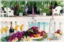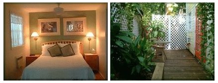 Our rooms are decorated with tropical furnishings and a unique collection of artwork. Most rooms have French doors that open out to the pool/spa and tropical gardens or the upstairs sundecks. We also offer a studio apartment with a living room and kitchenette.