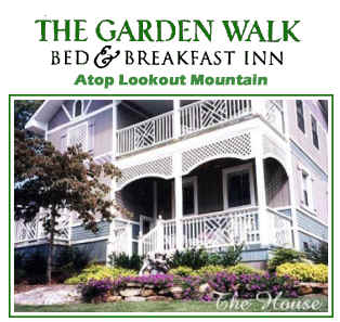 Garden WalkGarden Walk Bed and Breakfast Inn is just south of Chattanooga, Tennessee, and offers a quiet, peaceful atmosphere and scenic vistas from the top of Lookout Mountain. You can find romance and fantasy in "Lavender and Lace" and "Sunshine and Roses," nostalgic memories of yesterday in "Forget-me-not," or a touch of the wild west in "The Wild Rose, the best little establishment in Georgia."