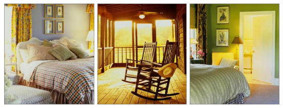 Our guest rooms are decorated in a style of rustic elegance. All rooms have private baths, telephones with voice-mail, and heating and air-conditioning. There are no TV's in the rooms, but there are two TV's on the property with full satellite connections. All rooms open onto common porches with rocking chairs.