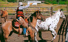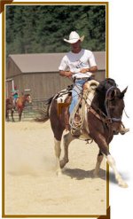 Everyone can participate in our "fun" rodeo, where you'll have a chance to see what it's like to be a real cowboy or cowgirl. There's wagon rides, our horse round-up, and centered riding instructions too. Other ranch activities include: fly fishing instruction, pond or lake fishing, hiking, trap and rifle shooting, archery, boat tours, roping classes, horseshoes, volley ball, and a climbing tower. Take a refreshing dip in our swimming pond, and at the end of the day, relax in one of our hot tubs, and enjoy the magnificent view. There's evening activities at the Ranch too!