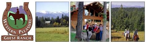 Western Pleasure Guest RanchLocated on 960 acres of summer pastures with tall pines and breathtaking views of the Selkirk and Cabinet mountain ranges is the Western Pleasure Guest Ranch. The ranch is located in Idaho's scenic Panhandle region, about 16 miles northeast of Sandpoint, Idaho. Western Pleasure is for folks who appreciate sincere, real country hospitality, while enjoying beautiful handcrafted log accommodation.