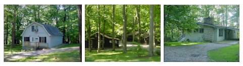 Amenities include: restroom and shower, linens provided, air conditioning, TV/VCR, deck, charcoal grill, 2 jacuzzis, and washer and dryer on-site. Our larger model includes a fully equipped kitchen. Pets are allowed. All cabins are non-smoking.