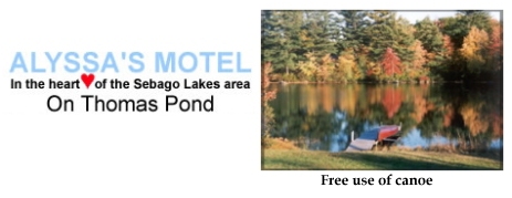 Alyssa's MotelAlyssa's Motel is located on Thomas Pond, RT 302, Casco, Maine. The 442 acres of crystal clear waters of Thomas Pond is great for canoeing, boating, and fishing enthusiasts who prefer a quieter setting than some of the busier area lakes.