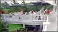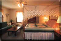 We offer 3 suites, 6 cottages and king and queen rooms, all with private baths and some with fireplaces. Available June 2004: Tower Suite with Jacuzzi, fireplace, two sitting rooms, a canopy bed and spectacular views.