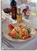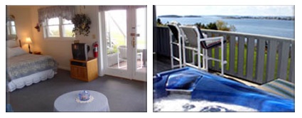 All guest rooms have queen or king beds, private baths, TV/VCR, in room coffee, and private decks. Some suites also feature jacuzzi tubs, gas fireplaces, microwaves and mini fridges. Four of our suites have full kitchens, and two suites have private hot tubs overlooking the ocean. Kick your feet back in our lawn chairs and feel the sea breeze on your face, or take a swim in our outdoor heated pool. We serve a full breakfast with a set menu that changes each day, and dinner is served to room guests only from 6pm-6:30 pm.