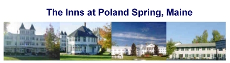 Inns at Poland SpringYou can't live at home as cheaply. . . or as well! The Inns at Poland Spring, Maine offers package plans with an average daily rate between $30. and $60. per person per day and includes clean and comfortable rooms and TWO, ALL YOU CAN EAT, FARM FRESH MEALS DAILY. We clean up, we wash the dishes and make the beds. All you have to do is relax and ENJOY! You pay for golf (Donald Ross 18 hole course) and shows. We include everything else. . . . Band concerts . . . giant out-door swimming pool (full of Poland Spring Water) . . . shuffleboard . . . horseshoes . . . croquet . . . putting green . . . grass tennis courts (just like Wimbledon) . . . game rooms . . . private library, fishing pond, and more!