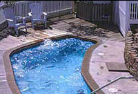 The pool area is sunny, pleasant and private, with a hot tub, umbrella tables, lounge chairs and barbecue grills.