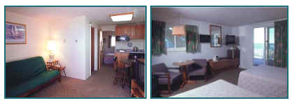 In room amenities are A/C, color cable TV w/ HBO, VCR, remote, phone, and refrigerator or fully equipped kitchenettes. Many variations are available i.e. king or queen beds, separate bedrooms, suites, private oceanfront decks.