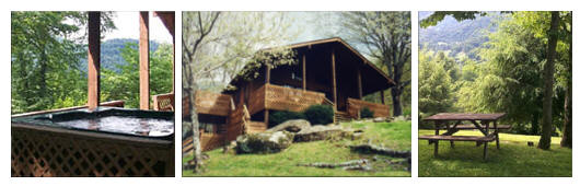 Fall Creek CabinsFall Creek Cabins is located four miles east of the Blue Ridge Parkway near Boone. Our cedar log cabins are nestled privately on 54 unique wooded acres with a private gate offering a rushing trout stream and a clear meandering creek that cascades over rock faces and ledges, creating beautiful waterfalls and rock pools. Each cabin features two bedrooms, two full baths, a loft, a stone fireplace (wood included), covered porches, a private full size hot tub, all the modern conveniences including dishwasher, microwave, washer/dryer, TV/VCR and telephone. You'll also find a swing, rocking chairs, gas grill and a private picnic table at each cabin.
