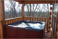 Hilltop HideawayHilltop Hideaway in Maggie Valley offers the best of both worlds. It's private yet convenient. Located only 1/2 mile off Hwy 19 but with the privacy and tranquility of a mountain top. Hilltop Hideaway is open year round and pets are welcome. This beautiful cabin has 2 bedrooms and 2 baths. One bedroom has a queen bed and private full bath, the other bedroom has a queen bed and twin bed and full bath. The great room has a queen sleeper sofa. Cabin features include: fireplace, A/C, satellite TV, VCR, washer and dryer. Relax in the 21 jet hot tub on the covered porch while you enjoy the best near and distant view in Maggie Valley. There is a gas grill, porch swing and picnic table. Maples, red oak, dogwood and hickory trees, along with the spectacular view, give you that change of scene and atmosphere that you will so enjoy.