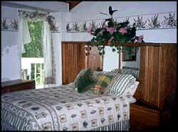 Our accommodations include our "Apple Blossom Chalet" 2 bedroom, 2 bath , 2 room suites Jacuzzi and fireplace, 12 guest rooms, all have feather bed toppers, coffee makers, A/C, private baths, cable TV, phones and fridge. All have their own theme and are decorated individually.
