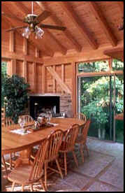 Our home-style breakfast is served buffet style in our beautiful cedar and glass dining room, lots of choices - homemade bread and jam, pastries, fresh fruit, always egg, meat, or waffles, maybe hotcakes, hot cereal to choose from.