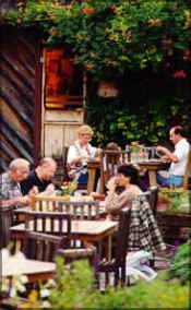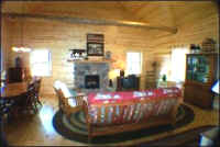 A unique dining experience awaits you in the double log house. Guests can watch gourmet meals being prepared in the open kitchen and in-season patio dining is available.