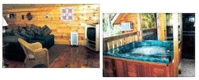 Features includes hot tubs, fireplaces, air conditioning and heat, TV/VCRs, fully equipped kitchens, charcoal grills, and linens are provided. Scenic View Cabin is wheelchair accessible.