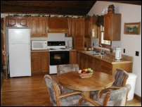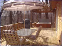 Curl up around a romantic fire in this comfortably furnished and meticulously maintained vacation retreat. Features include: a large country kitchen, full bath, 2 bedrooms with queen beds and a loft with 2 single beds, TV/VCR and CD stereo, DVD player, A/C, full deck with 6 person hot tub, wood fireplace, gas grill, assorted coffees and teas, and all soaps, towels, and linens.