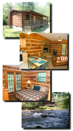 Choose from a cozy one room rustic cabin, or a 2 or 3 bedroom log cabin. Features include: fireplaces, private decks with hot tubs, fully equipped kitchens, washer/dryer, cable TV, VCR, charcoal grill and central heat and air. Some cabins even have a romantic bedside jacuzzi for two!