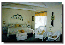 All of our bed and breakfast guest rooms are very spacious and feature queen-sized Victorian beds, colorful floral designer furnishings, private bathrooms, lush terry robes, air-conditioning, ceiling fans, televisions, phones, guest refrigerators, comfortable armchairs, and desks.