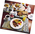 A delicious full breakfast is served each morning. Muffins (or other sweet breads) are made fresh every morning and are served along with fresh fruit, fruit juice, coffee or tea and an entrée such as made-to-order omelets or Caramel Pecan French Toast.