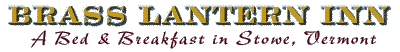 Brass Lantern Inn Bed and BreakfastThe Brass Lantern Inn Bed and Breakfast is located in Vermont on the edge of village of Stowe. Exquisite cuisine, glorious shopping and outdoor recreation are just a short walk or drive from our doorstep.
