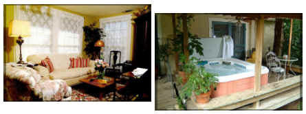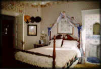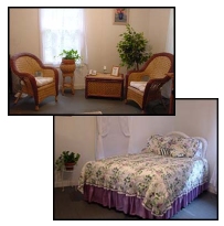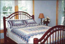 The charming gingerbread trimmed cottage is snuggled below a canopy of oak trees. The cottage has a queen bed, full bed, and two single rollaway beds. There's a small equipped kitchen, private bath, TV/VCR, private telephone, and a charcoal grill.