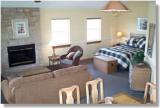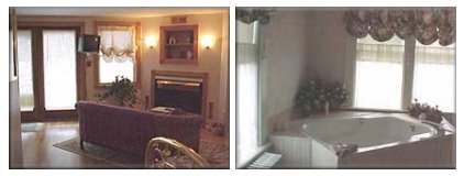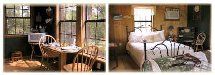 Although “old timey” in ambiance the 20’x20’ cabin does offer modern day amenities such as a queen size bed, fold out futon, jacuzzi, shower, TV VCR, CD player, and a kitchenette complete with refrigerator, stove-top oven, microwave, and a coffee maker. Complimentary breakfast includes eggs, bacon, juice, milk, biscuits, cinnamon rolls, and coffee.
