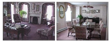 Inside, the eight coal burning fireplaces, beautiful grand piano once owned by famous concert pianist, Lawrence Meredith, and other fine appointments add to the romantic ambiance..