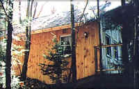The cabins are designed for romantic getaways for two. They are open from Memorial Day to the end of October. In warm weather, explore our trails, relax on the deck, or bask in the outdoor Jacuzzi. In cold weather, cross-country ski or snowshoe out the front door, or enjoy a game of cards in the pub. And help feed the inn's chickens any time of year!