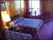 Guestrooms are finished in cedar and knotty pine and feature two double beds, private bathroom, telephones, TV with HBO, and air conditioning. A two-bedroom unit has a queen bed in the large common room and bunk beds in a back bedroom with private bathroom (shower only).