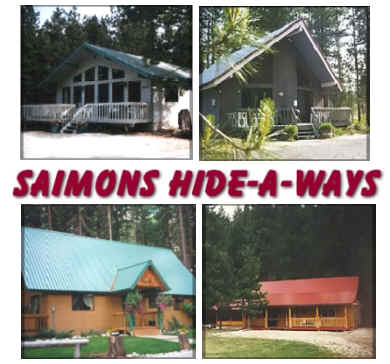 Saimons Hide-A-Ways cabins are located in the Plain Valley along the Wenatchee River in Leavenworth, Washington. Each cabin sits on it's own 1/2 to 2 acre lot.