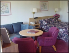 All rooms have one or two queen beds, microwave, refrigerator, coffee maker, cable TV with HBO & EPSON, and telephone with internet access. Suites have a spacious living area with a pull out sofa.