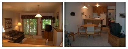 We offer one bedroom and two bedroom suites with full kitchens, living rooms with queen size sleeper sofas, dining areas, cable TV/VCR, and A/C. All suites have private decks/balconies and breathtaking wooded views.