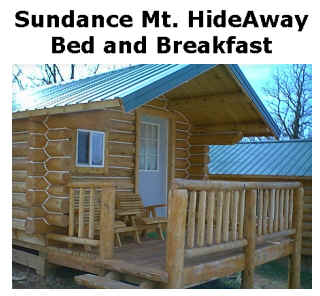Sundance Mt. HideAway Bed and Breakfast is located in Sundance, in beautiful Northeast Wyoming. We offer 2 log cabins with private baths. They are the Getaway and the Wildlife.